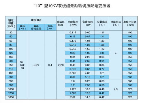 "10"型10KV双绕组无励磁调压配电变压器